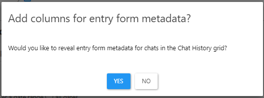 After a chat that includes a custom entry form field exists, the Chat History interface should prompt you to reveal the column. Note that your current Chat History search must include the chat associated with your form metadata. For example, the default "range:week" search should do the trick if the chat in question happened anytime within the last seven days.